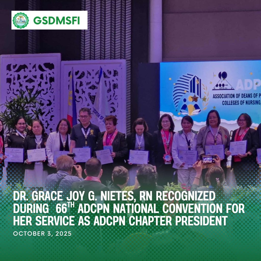 Dr. Grace Joy G. Nietes was recently awarded a Certificate of Appreciation during the 66th Association of Deans of Philippine Colleges of Nursing (ADPCN) National Convention and General Assembly held at the Fiesta Pavilion, Manila Hotel, Ermita, Manila on October 3, 2025.